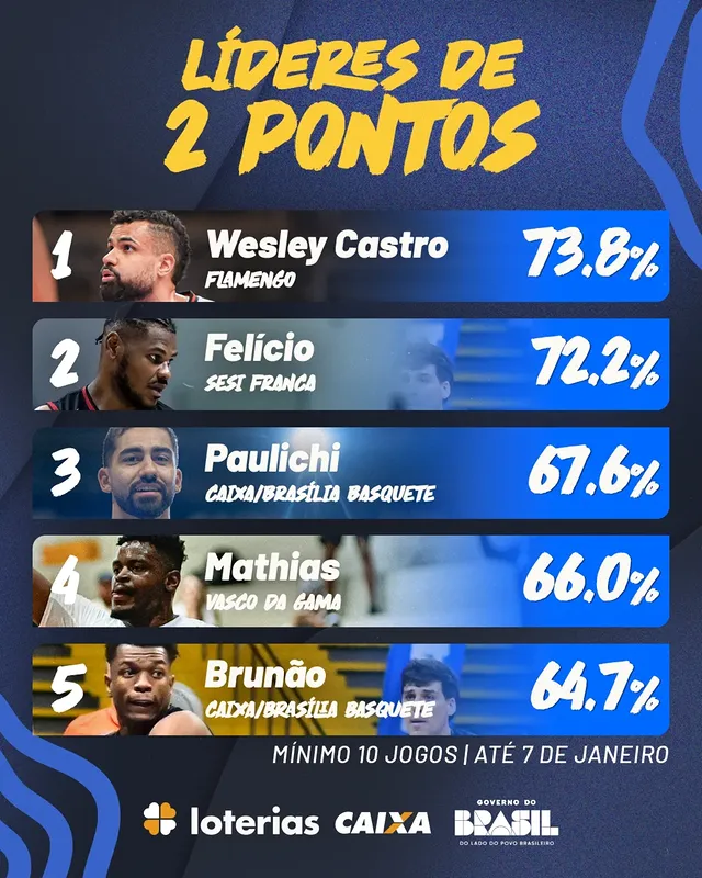 Com médias impressionantes, esses são os atletas que lideram os principais fundamentos do basquete! Os craques do NBB CAIXA fecharam o primeiro turno com moral e a segunda parte do campeonato promete! 🔥