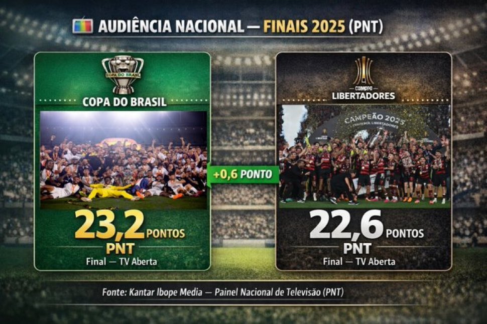 A final da Copa do Brasil registrou audiência superior à da final da Libertadores em todo o Brasil.