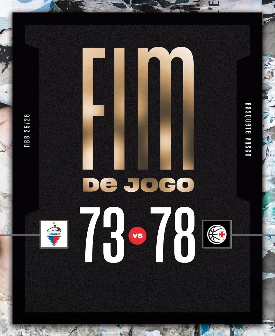 Na noite desta terça-feira (13), em Fortaleza, o Vasco da Gama venceu o Fortaleza Basquete Cearense por 78 a 73, no Ginásio da UNIFOR, em partida válida pela temporada 2025/26 do Novo Basquete Brasil (NBB). Mesmo atuando fora de casa e após ficar 16 pontos atrás no placar, a equipe cruz-maltina reagiu no último período e conquistou apenas seu terceiro triunfo na competição.