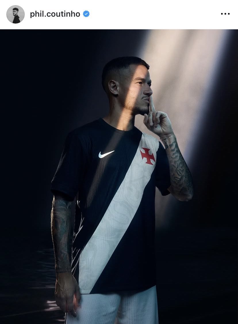 Veja foto de Philippe Coutinho com a nova camisa do Vasco, produzida pela Nike