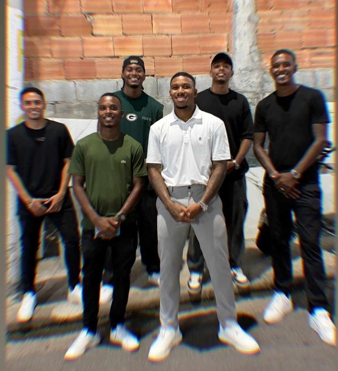 O lateral-esquerdo Leandrinho fez a festa de noivado nesta sexta, no Complexo do Alemão. Nessa foto, dá pra ver que alguns jogadores do Vasco estiveram presentes, como Paulinho, Lyncon, GB e Robert Renan. Parabéns ao jovem que acaba de ser negociado com o Al Sharjah-EAU.