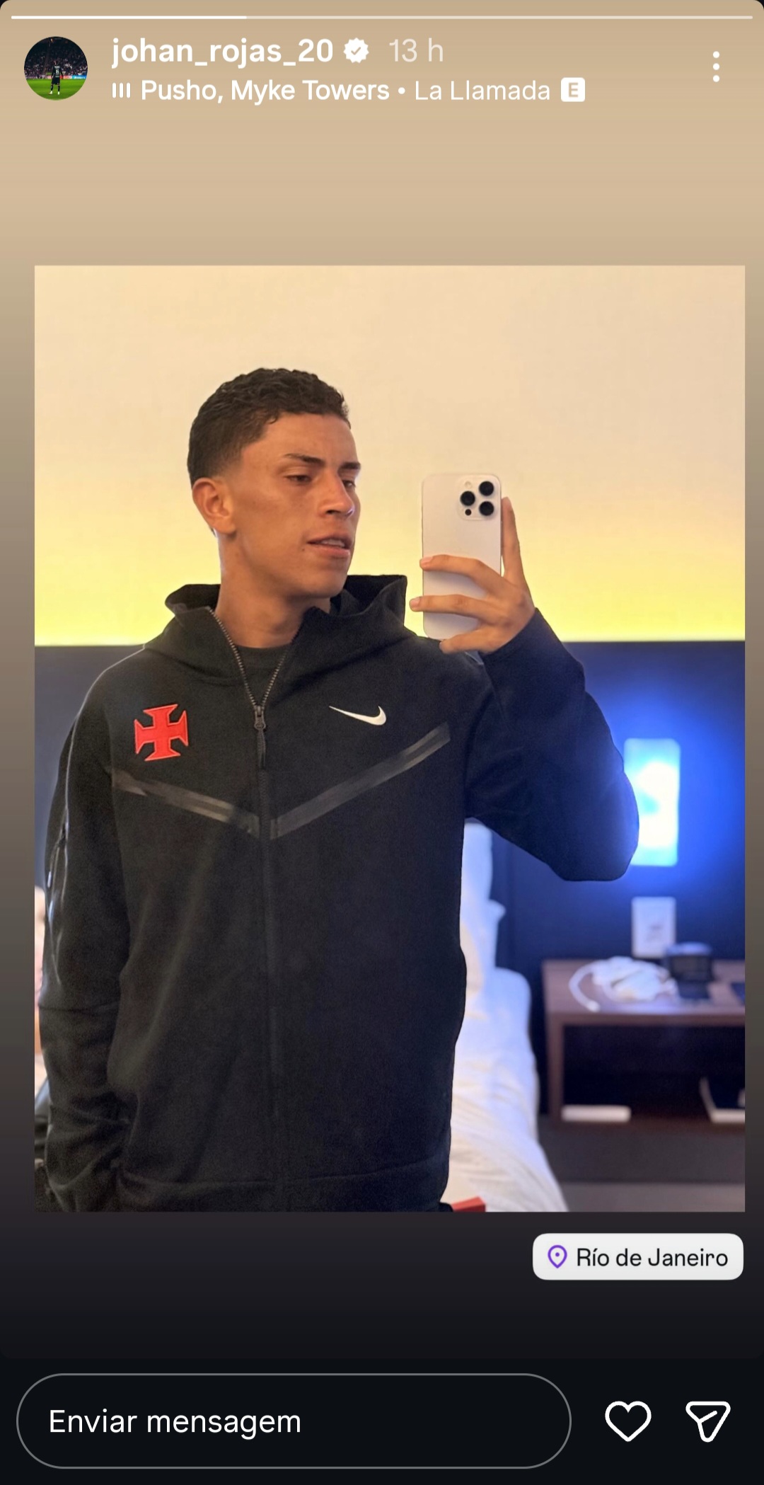 Johan Rojas posta foto com casaco do Vasco produzido pela Nike