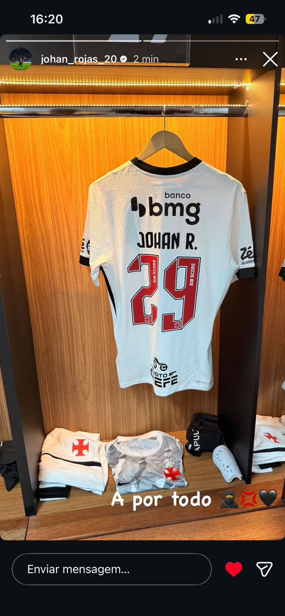 18/01/26 - Johan Rojas posta foto com casaco do Vasco produzido pela Nike