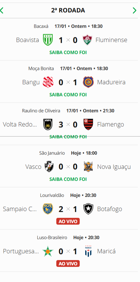 Fonte: NETVASCO (texto), ge (classificação, resultados)