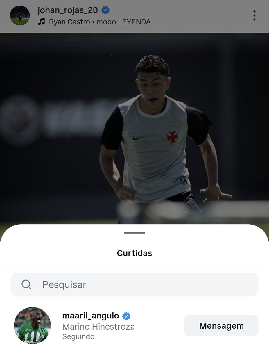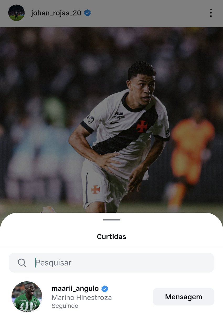 Hinestroza curtiu as duas últimas fotos de Johan Rojas