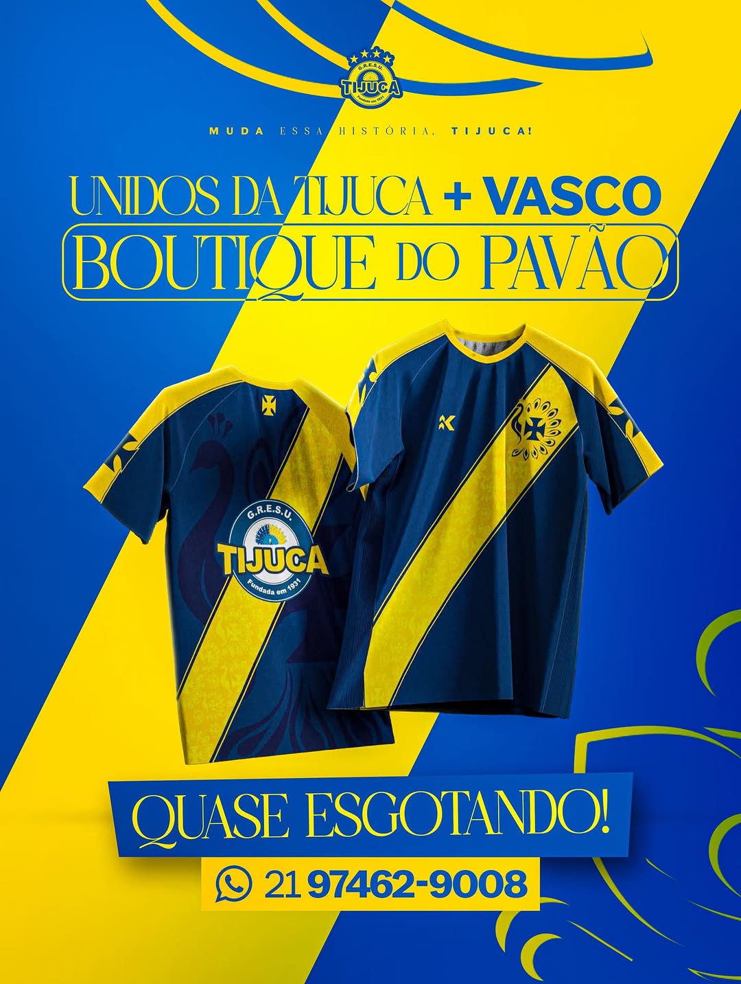 As blusas especiais em homenagem ao Vasco da Gama estão quase esgotadas! É a última chance de garantir a sua e vestir história, tradição e paixão. Amanhã tem jogo do Gigante da Colina e nada melhor do que assistir no estilo, com a camisa que une Vasco e Unidos da Tijuca. Corre pra garantir a sua antes que o apito final leve todas!