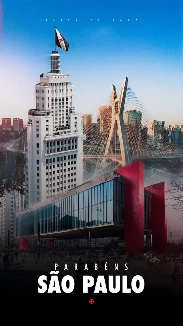 Vasco parabeniza a cidade de São Paulo, que completa 472 anos