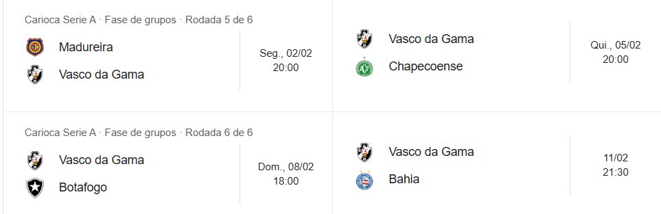 🗓️O Vasco terá 4 jogos seguidos em São Januário em um período de 9 dias.