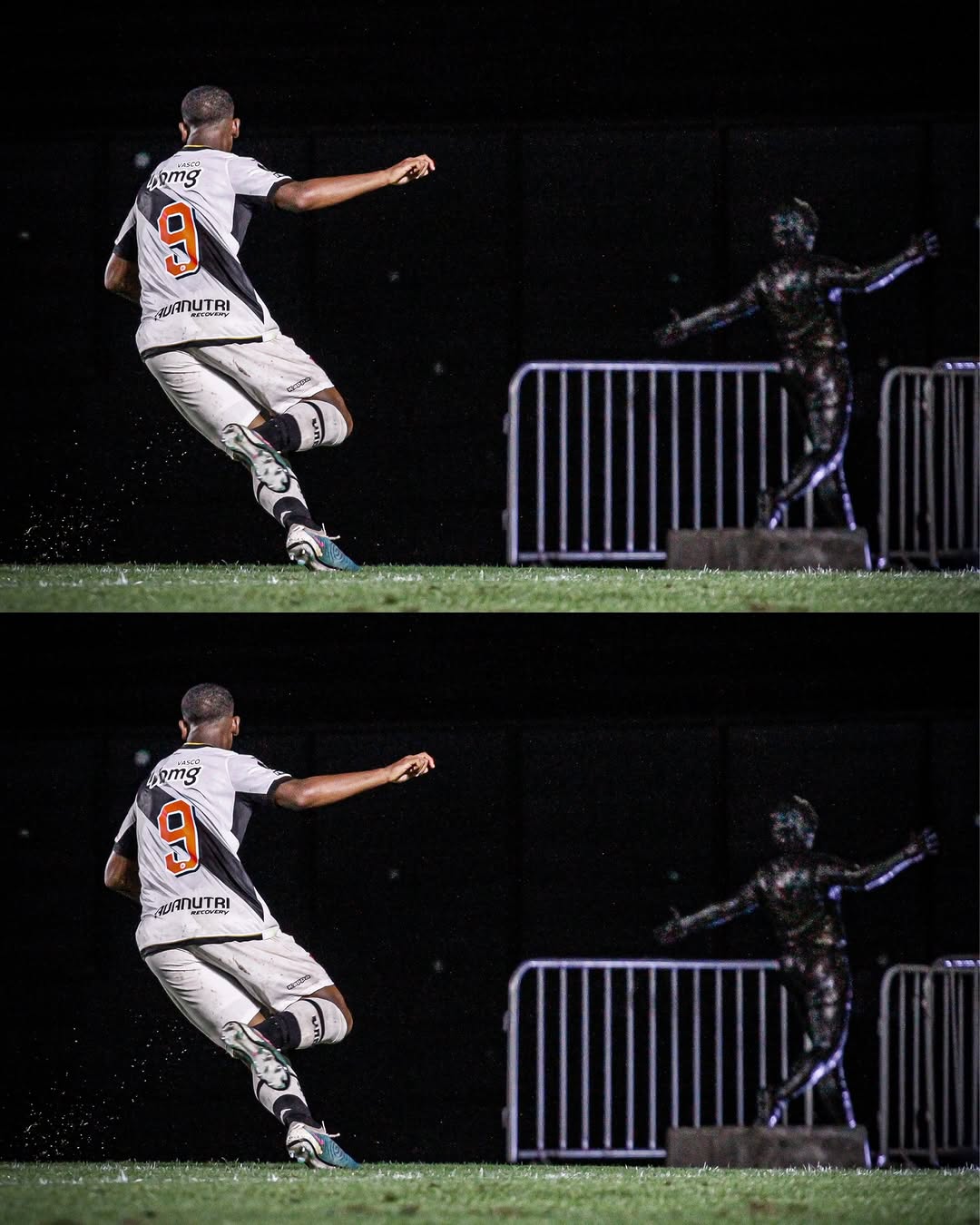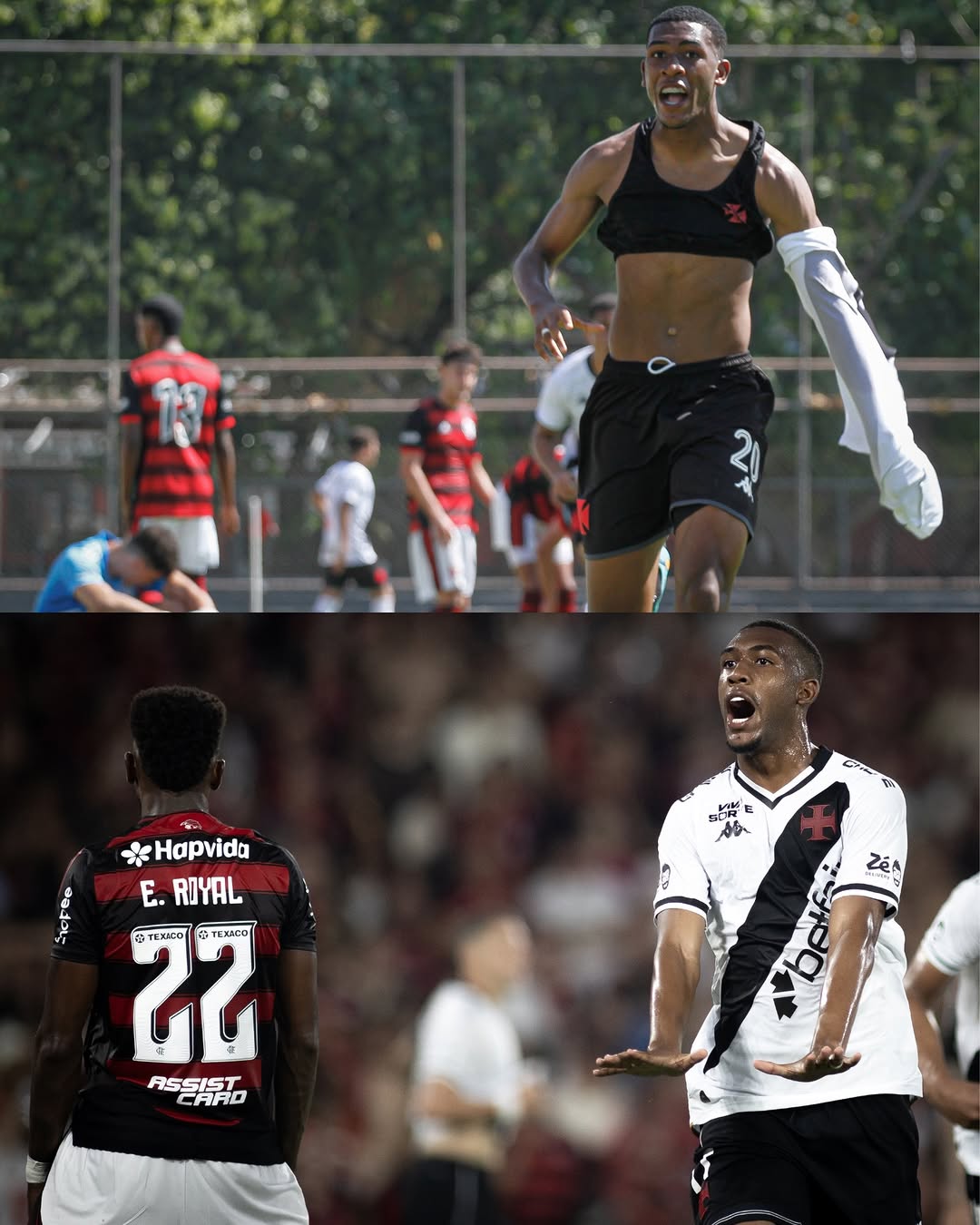 a primeira é de 15 de Janeiro de 2026 e a segunda de 27 de Agosto de 2017. acredito muito na capacidade das histórias que uma foto pode resgatar e contar por si só. a primeira foto é do último jogo que fiz do Rayan (até aqui) pelo Vasco, e segunda além de ser a primeira que fiz dele, também era a minha primeira vez sendo fotógrafo esportivo (confesso que ter pego esse golaço dele foi mais sorte que qualquer coisa rs) o registro de 2017 é o terceiro gol do Vasco contra o Flamengo pelo metropolitano Sub-11, ele fez dois nessa partida. Assim como ele seguiu crescendo e avançando nas categorias, tive a oportunidade de também crescer na minha carreira e ir contando a história dele até chegar no profissional, e ter essa "máquina do tempo" é uma das coisas que mais amo no meu trabalho. Deixo aqui alguns clicks que fiz ao longos desses 9 anos. Seguirei sempre tentando registrar/contar histórias através da minha câmera. toda sorte do mundo na sua caminhada, cria. foi uma honra! 💢🤝📷