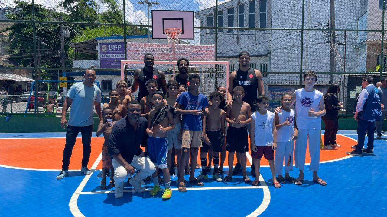 Atletas do basquete do Vasco participam de reinauguração de quadra na Barreira do Vasco
