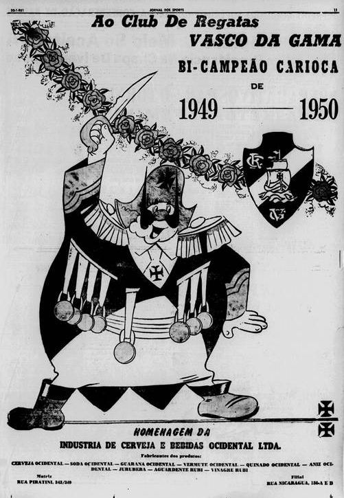 Mas em 1950 os jogadores vascaínos estavam abatidos. Também, pudera: nada menos do que oito jogadores (Barbosa, Augusto, Danilo, Ely, Ademir, Chico, Maneca e Alfredo II), e mais o treinador (Flavio Costa), haviam tomado parte na delegação brasileira derrotada em casa pelo Uruguai na Copa do Mundo.