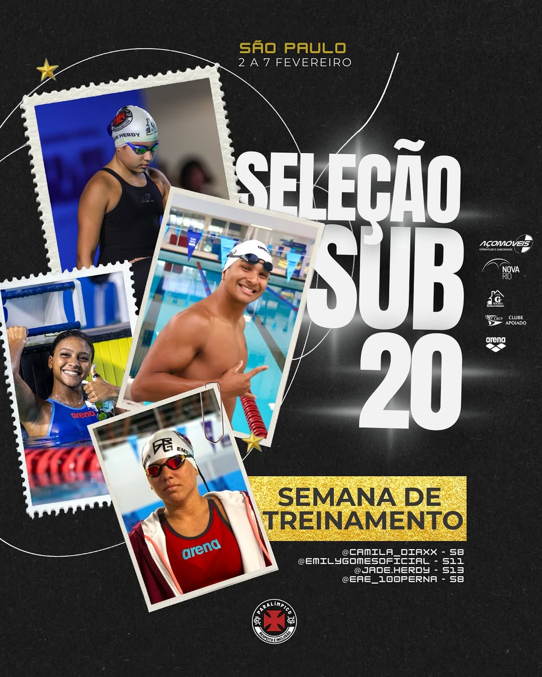 Natação Paralímpica: Jovens atletas vascaínos iniciam treinos com a Seleção Sub-20 em São Paulo a partir desta 2ª-feira