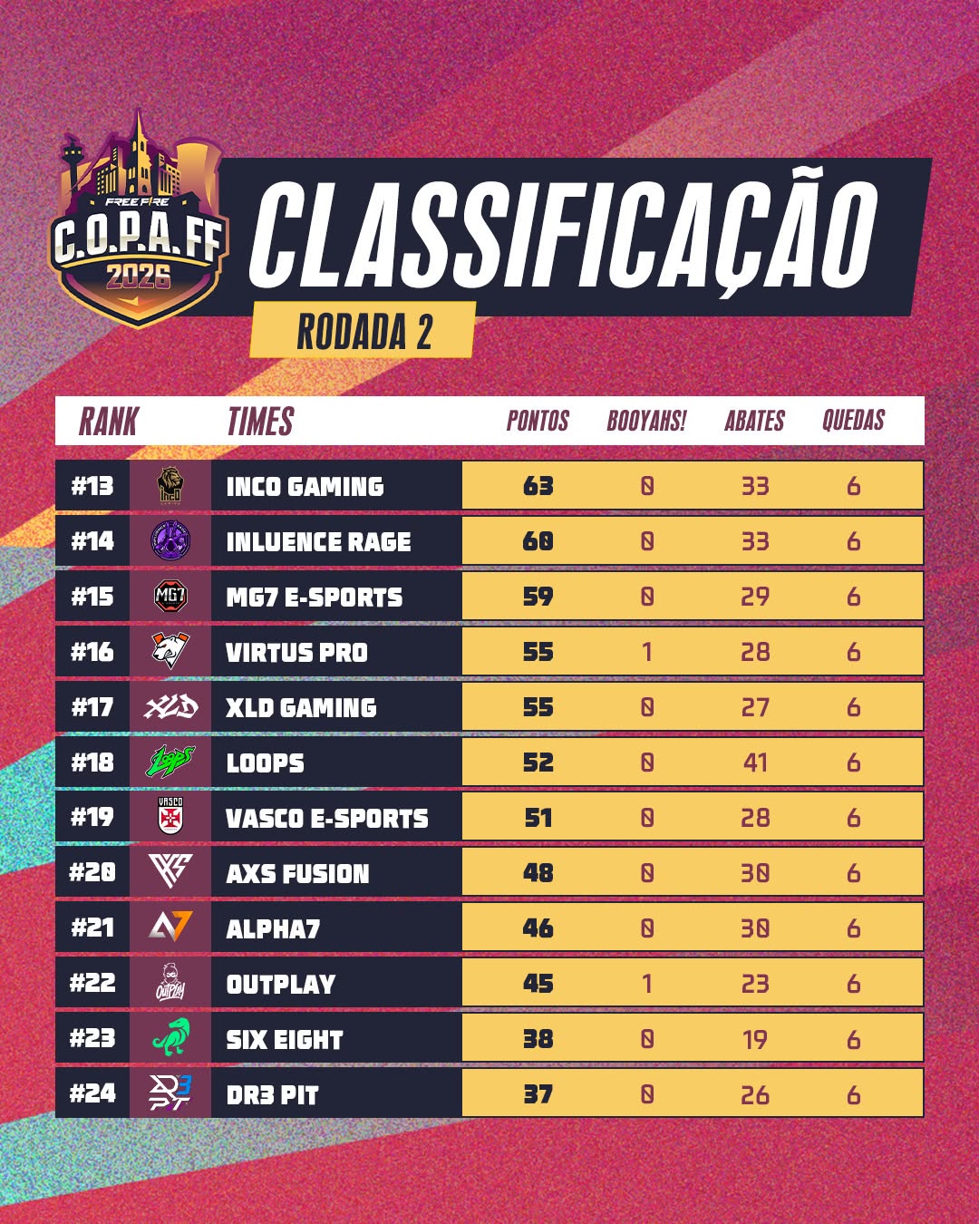 Em qual posição seu time ficou após a Rodada 1 e 2? #FreeFireBR