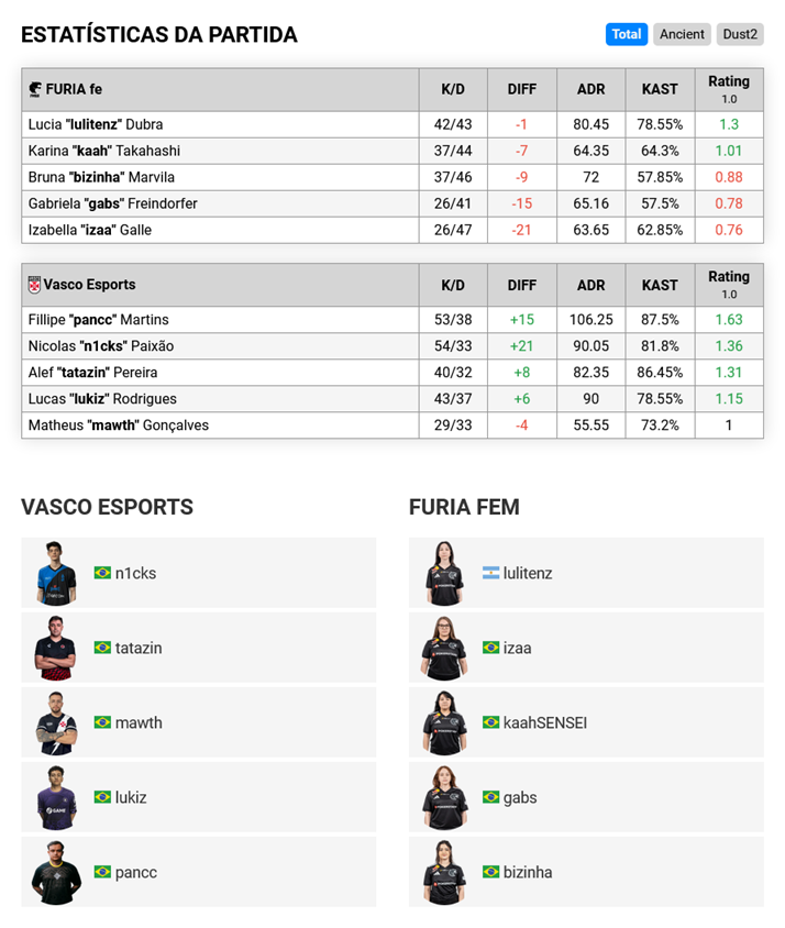 E-Sports: Vasco vence a Furia Fem por 2 a 0 pelo CCT S8 de Counter-Strike