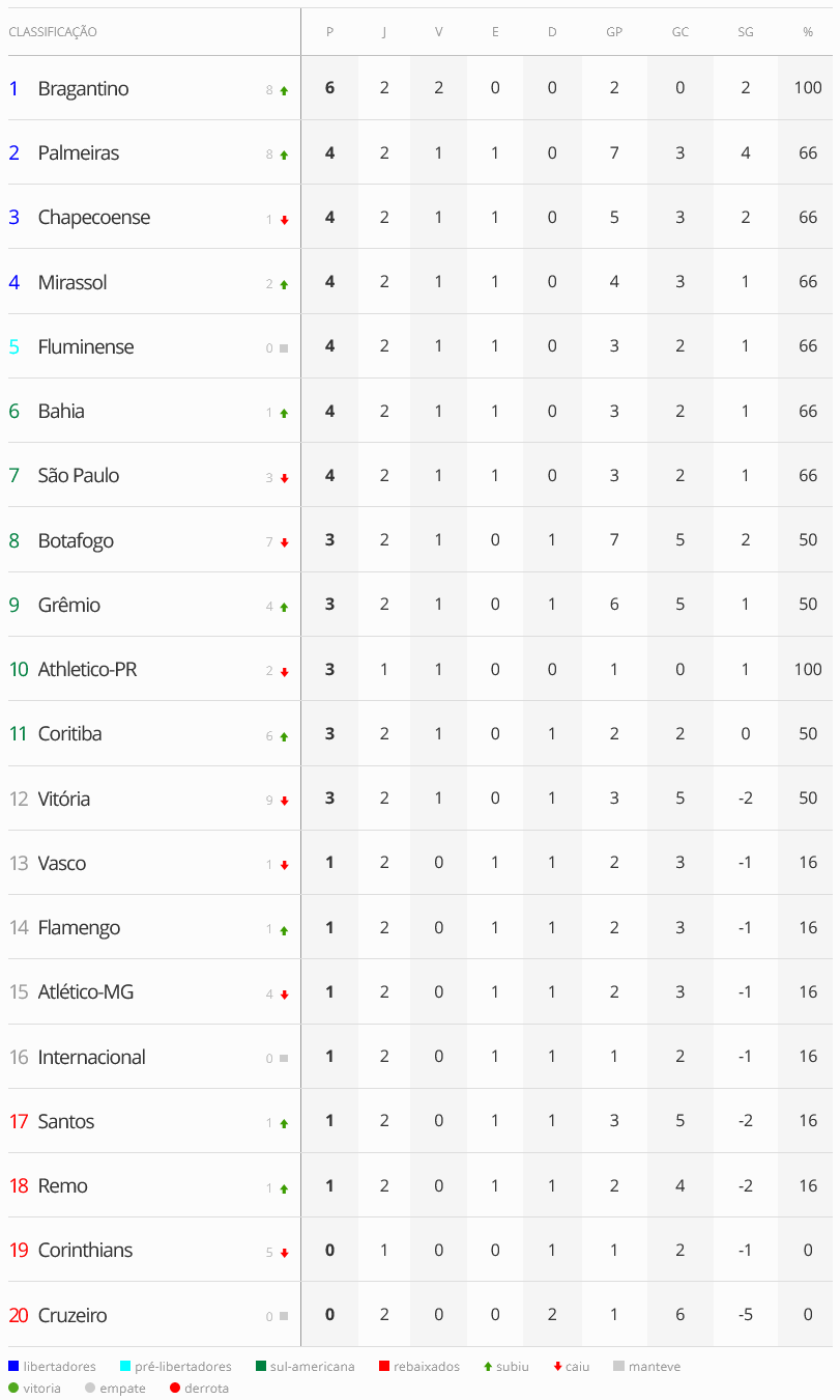 A um jogo do fim da segunda rodada do Campeonato Brasileiro (ela só termina no dia 19/02, com Athletico-PR x Corinthians), o Vasco está na 13ª colocação.