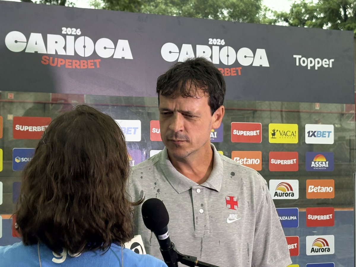 Diniz mostrou preocupação com a chuva e disse que se o jogo começasse agora, não tinha condições. Está chovendo demais em São Januário.