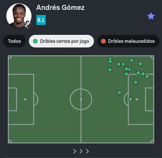 Andrés Gómez foi o líder de dribles certos de Vasco 1-1 Volta Redonda!