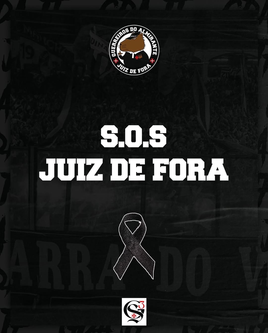 A TOV – Torcida Organizada do Vasco vem a público manifestar sua solidariedade ao povo de Juiz de Fora neste momento tão difícil.