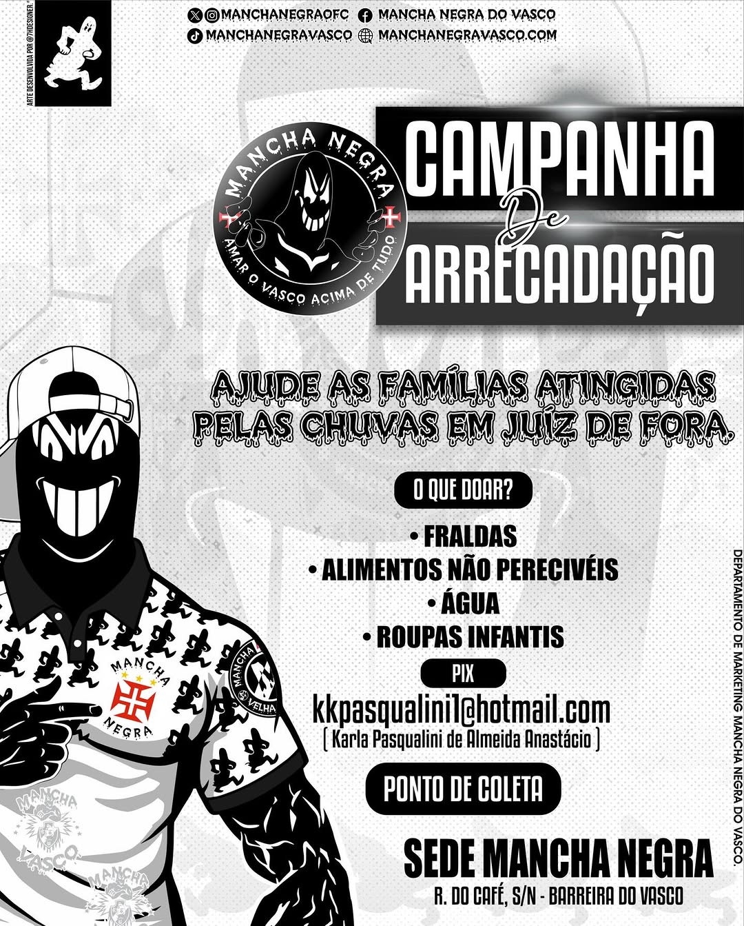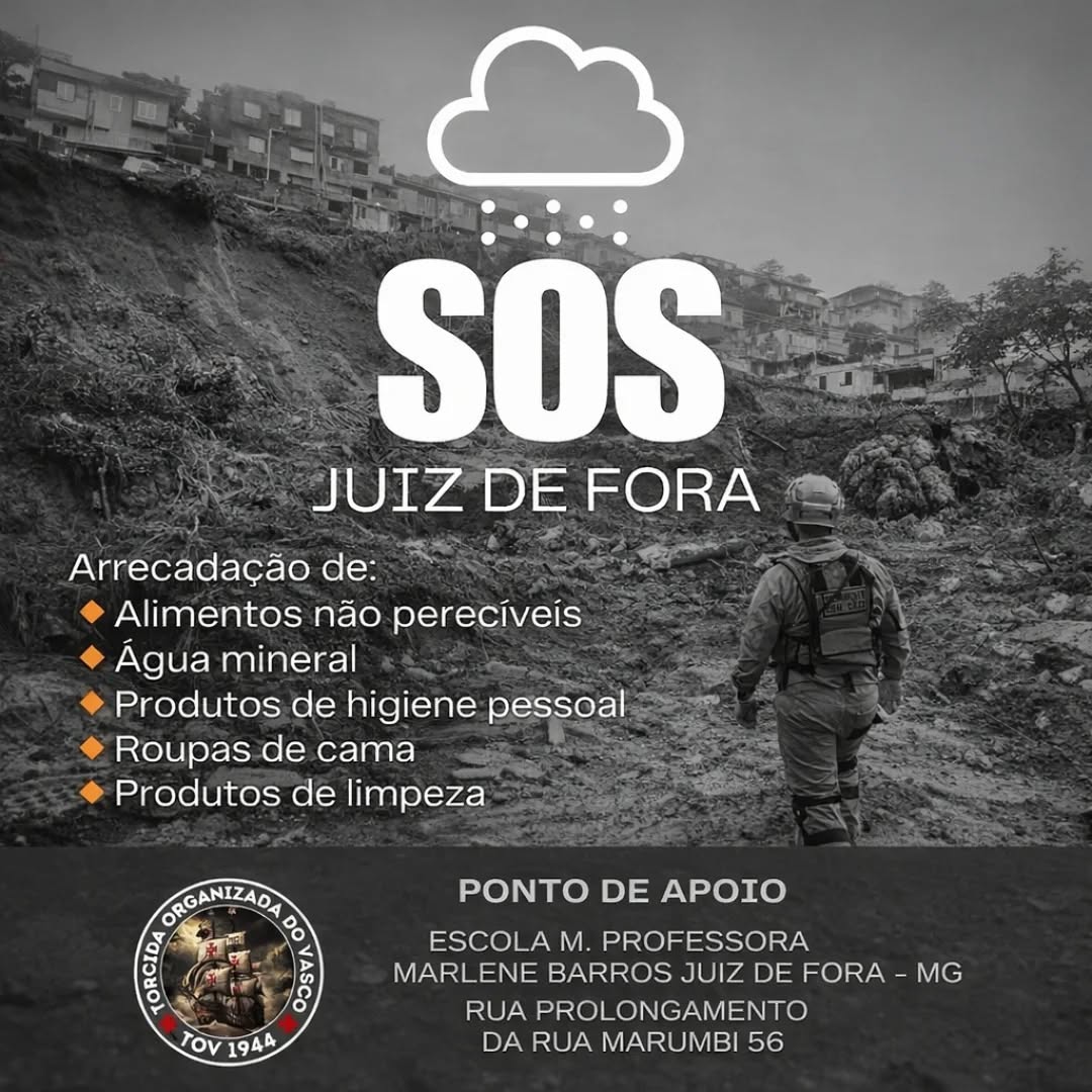 Organizadas do Vasco fazem campanha de arrecadação para os atingidos pelas chuvas em Juiz de Fora