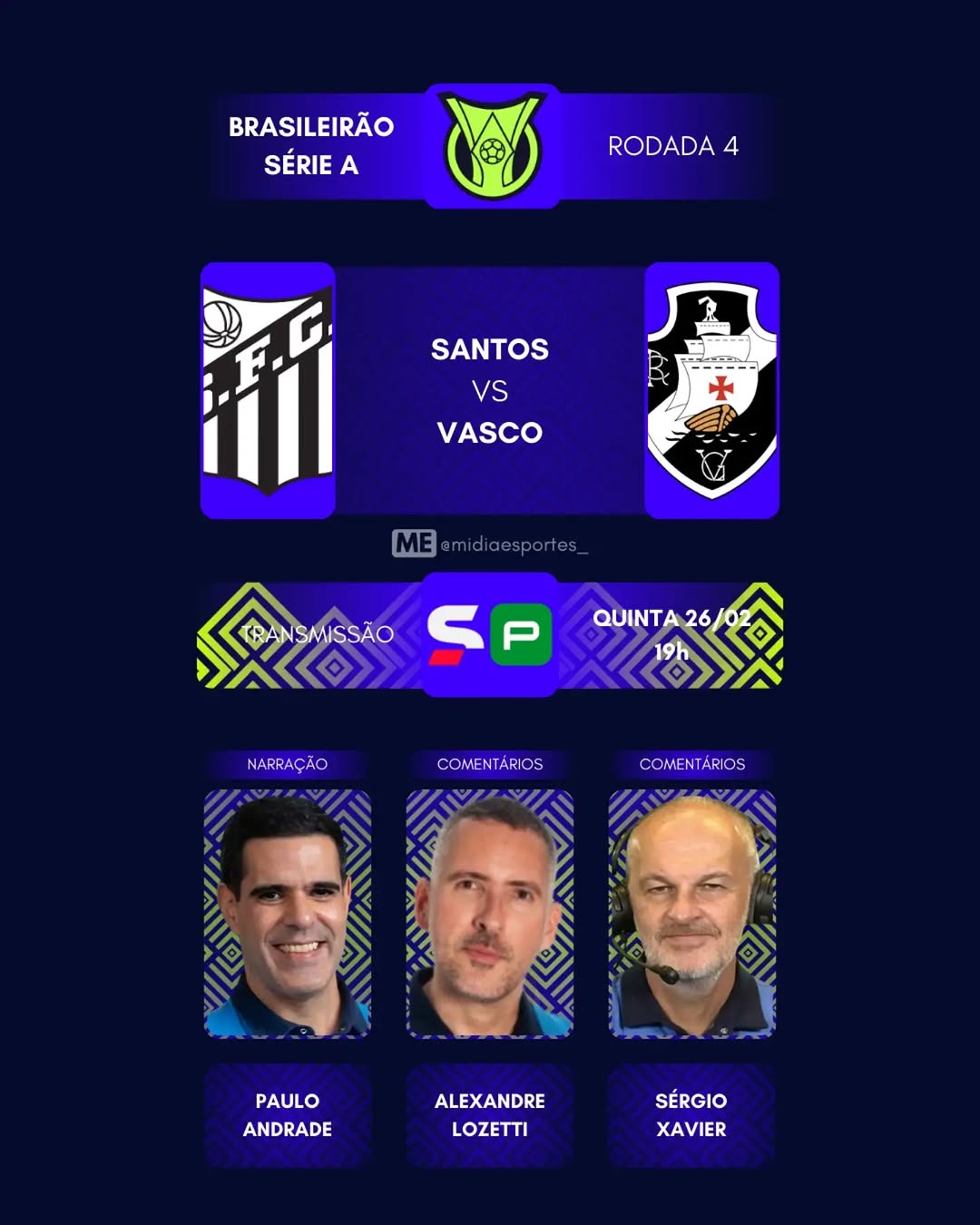 Confira os profissionais que trabalharão na transmissão de Santos x Vasco