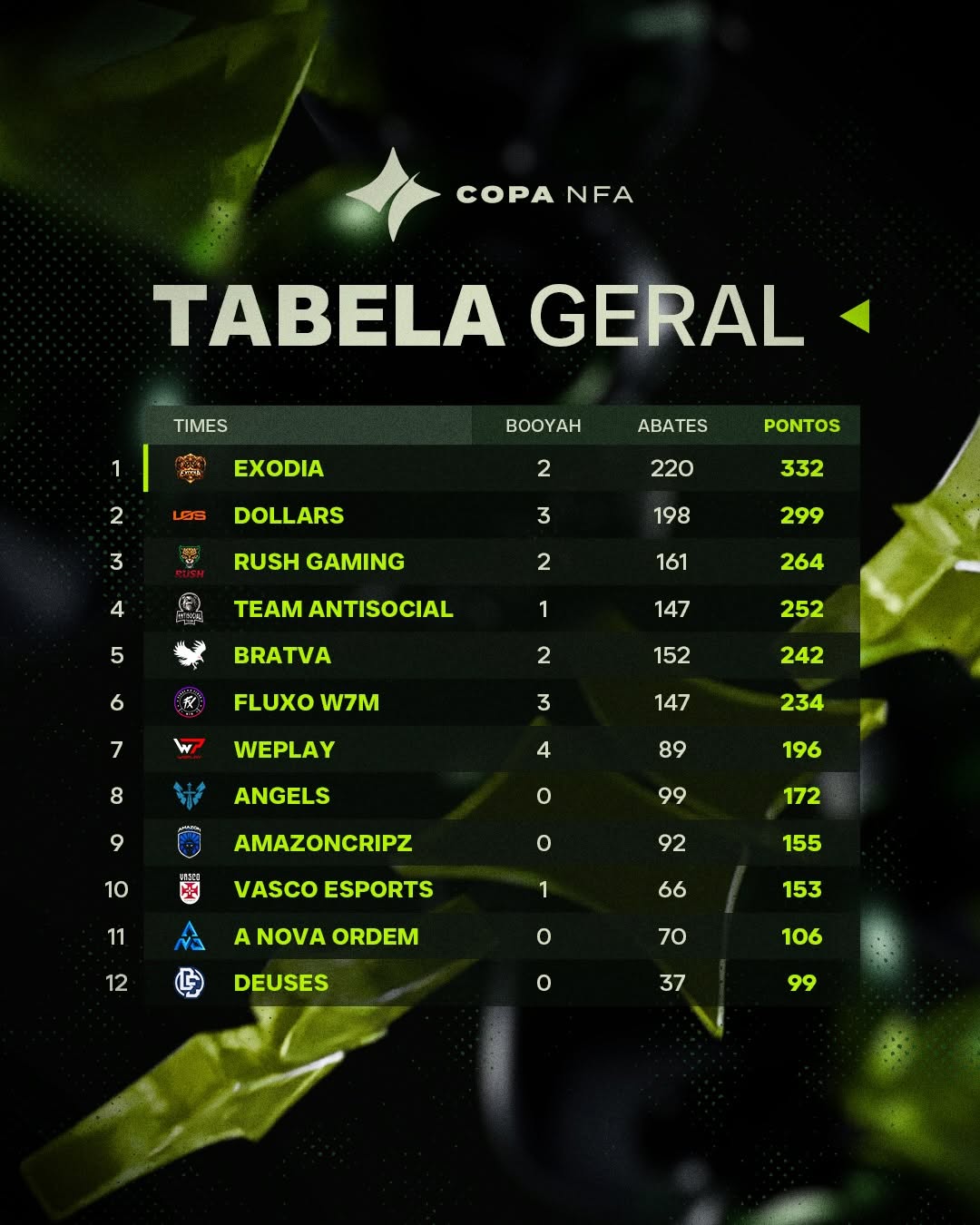 Terceiro dia de Copa NFA e a tabela já começou a mostrar quem veio pra brigar pelo topo. 👀🔥