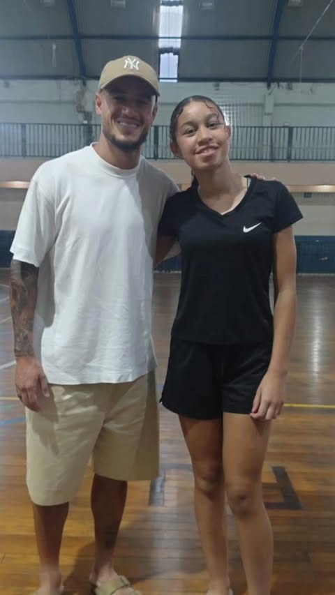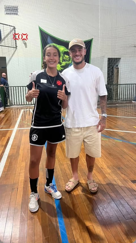 Philippe Coutinho vai ao treino de sua filha Maria, que joga no futsal de base do Vasco, e é tietado