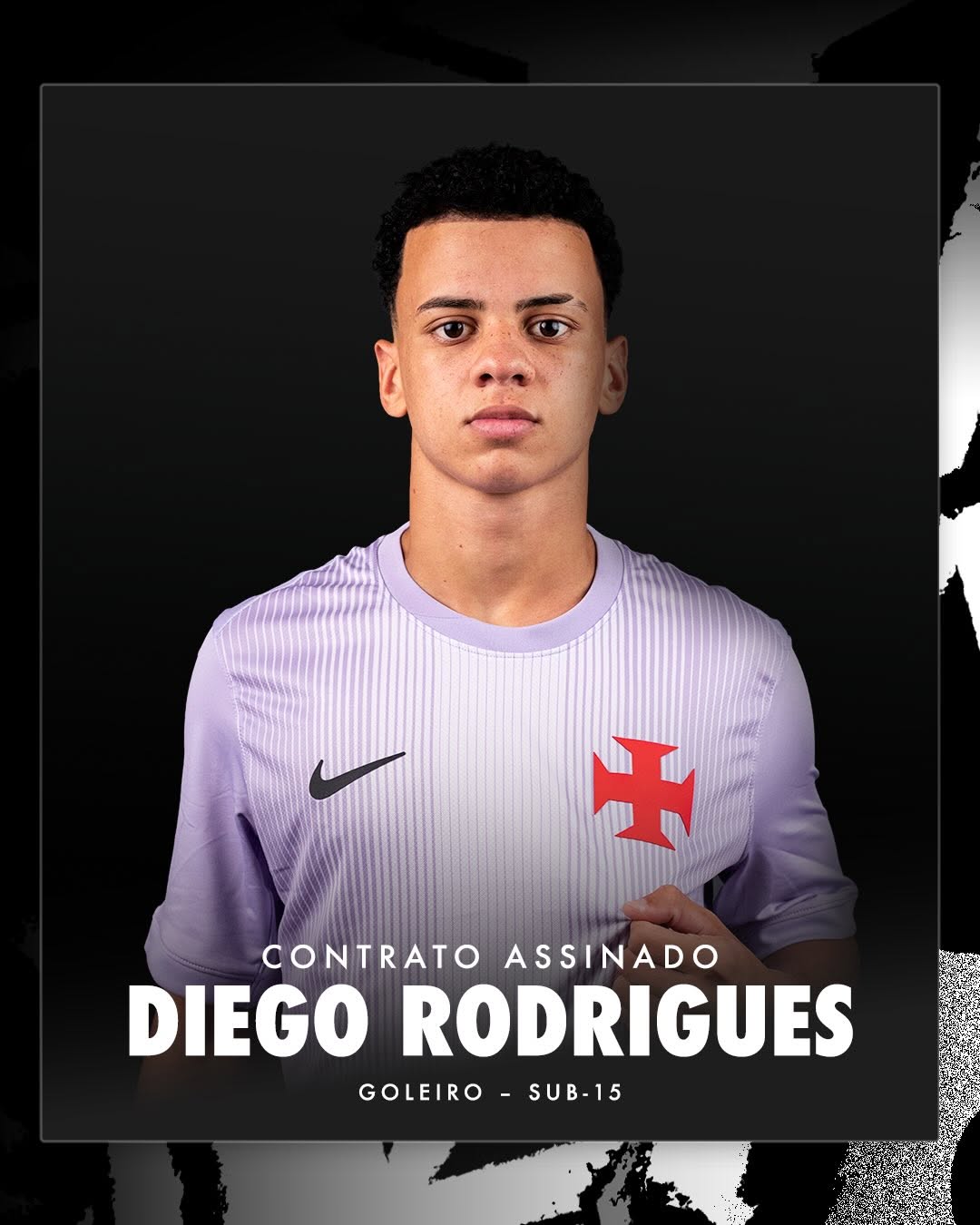O goleiro Diego Rodrigues, nascido em 29 de janeiro de 2011, em Ipatinga (MG), chegou ao Vasco em outubro de 2025 e assinou contrato de formação com vigência de 1º de fevereiro de 2026 até 1º de fevereiro de 2029.