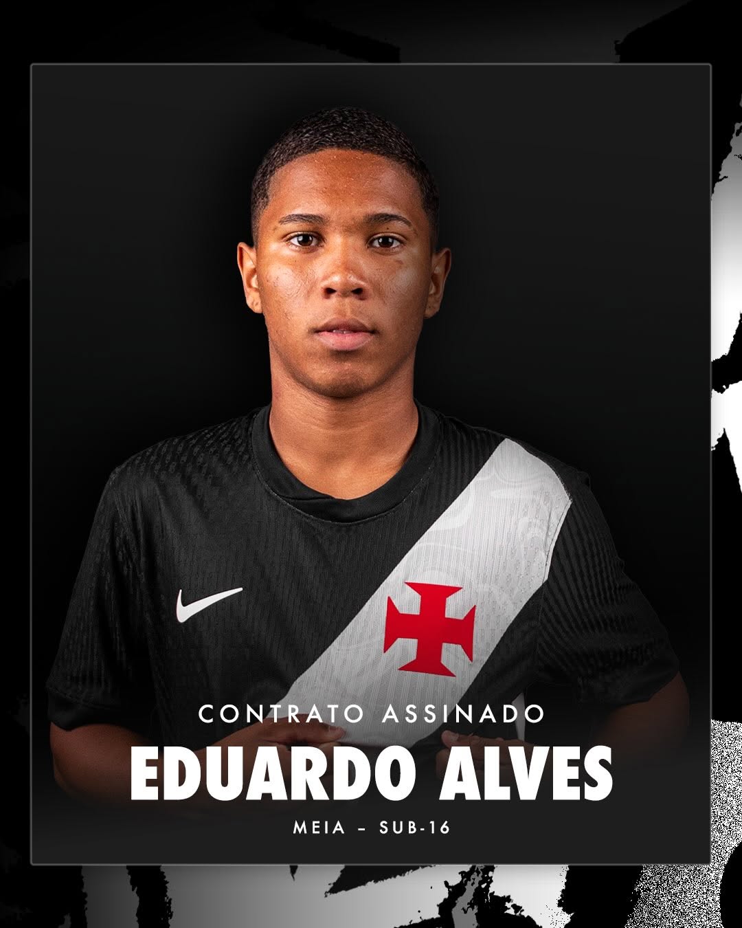 Fechando a lista, o meio-campista Eduardo Alves, nascido em 2 de fevereiro de 2010, em Patrício Paulista (SP), chega ao Vasco por empréstimo, com vínculo válido até 31 de janeiro de 2027.