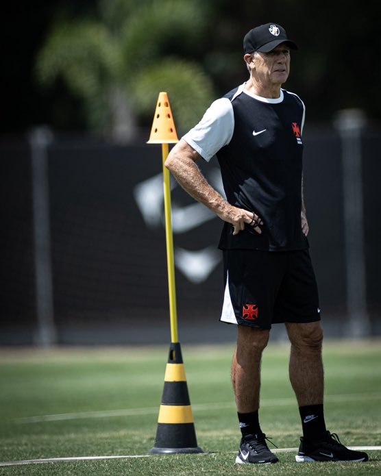 Renato Gaúcho trajado de Vasco da Gama em seu primeiro treinamento neste retorno, nesta manhã.