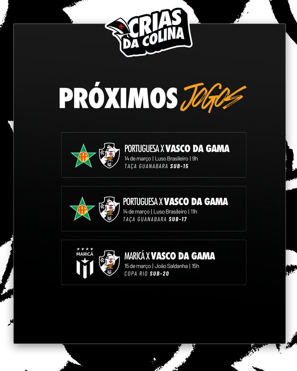 Vasco joga fora de casa contra a Portuguesa pelos Cariocas Sub-15 e Sub-17 e contra o MaricĂĄ pela Copa Rio Sub-20 neste fim de semana