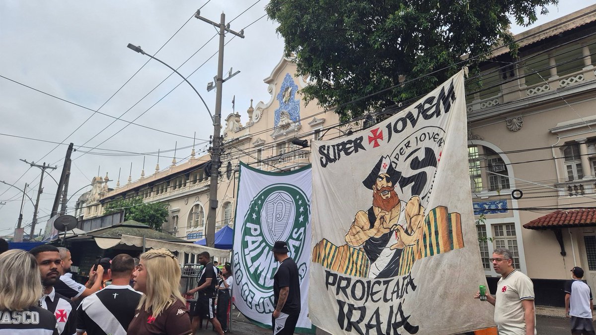 Clima é de amizade entre as torcidas de Vasco e Palmeiras no entorno de São Januário