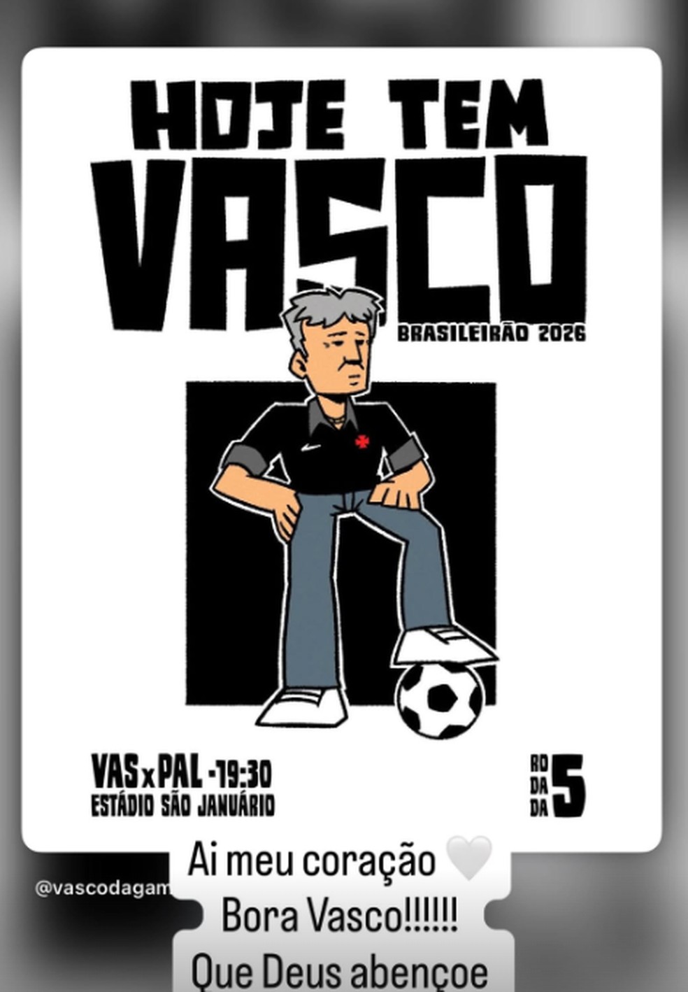 "Ai, meu coração! Bora Vasco, que Deus abençoe!", postou ela.