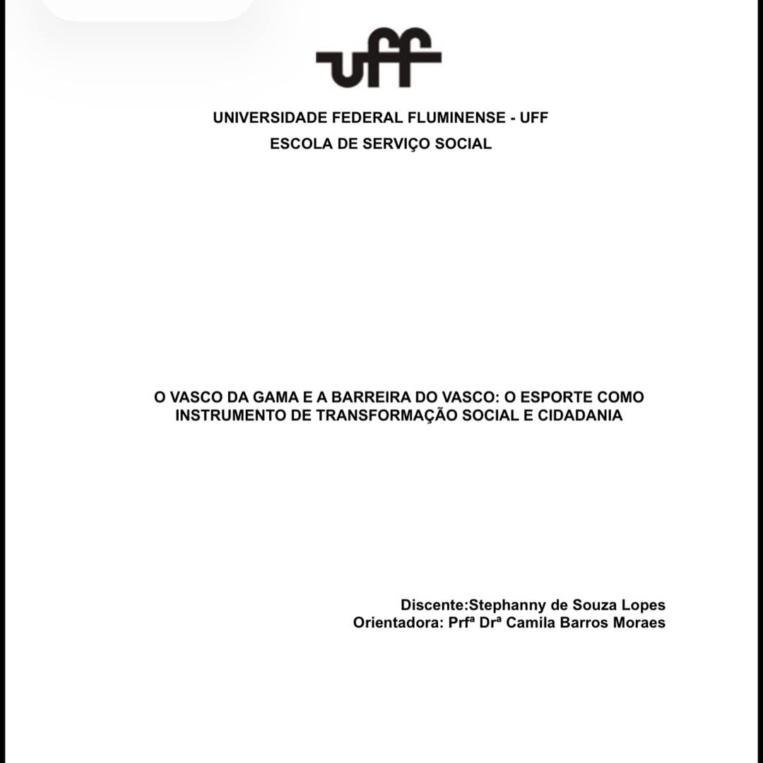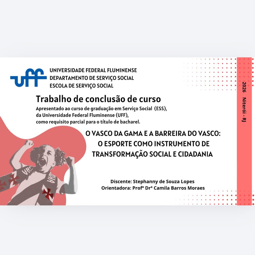 Vascaína apresenta TCC de Serviço Social com o tema 'O Vasco da Gama e a Barreira do Vasco'