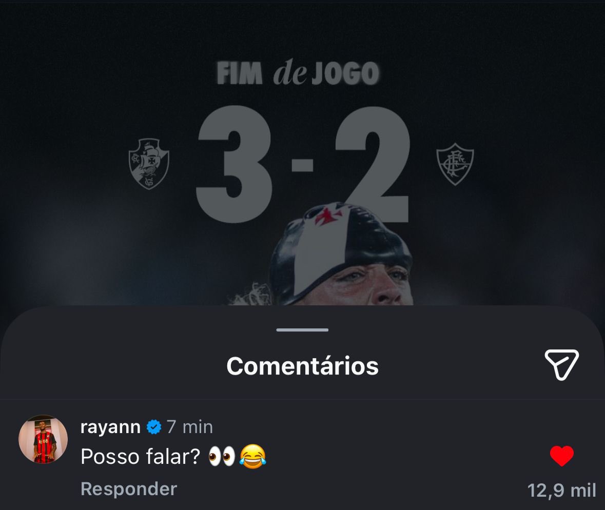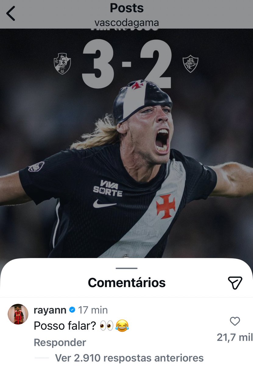 Rayan posta em publicação do Vasco após a vitória sobre o Fluminense: 'Posso falar?'