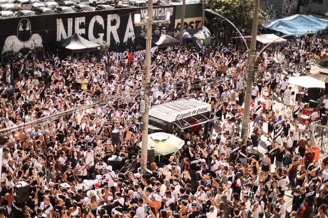 15:42 - Torcida do Vasco faz festa do lado de fora de São Januário antes do jogo contra o Grêmio; veja vídeo