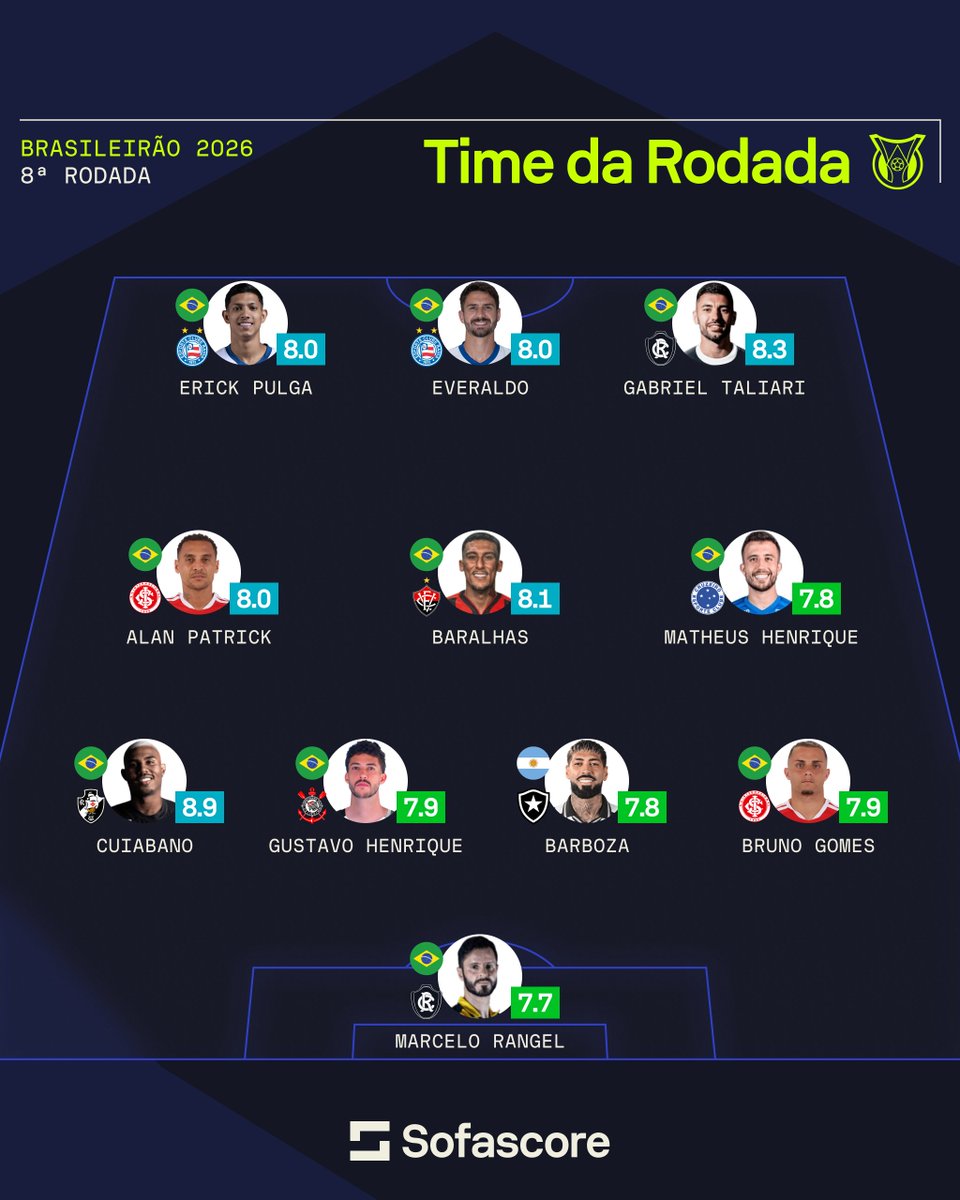 O Time da Rodada do @Brasileirao 2026 de acordo com as maiores Notas Sofascore! 🔥🔥