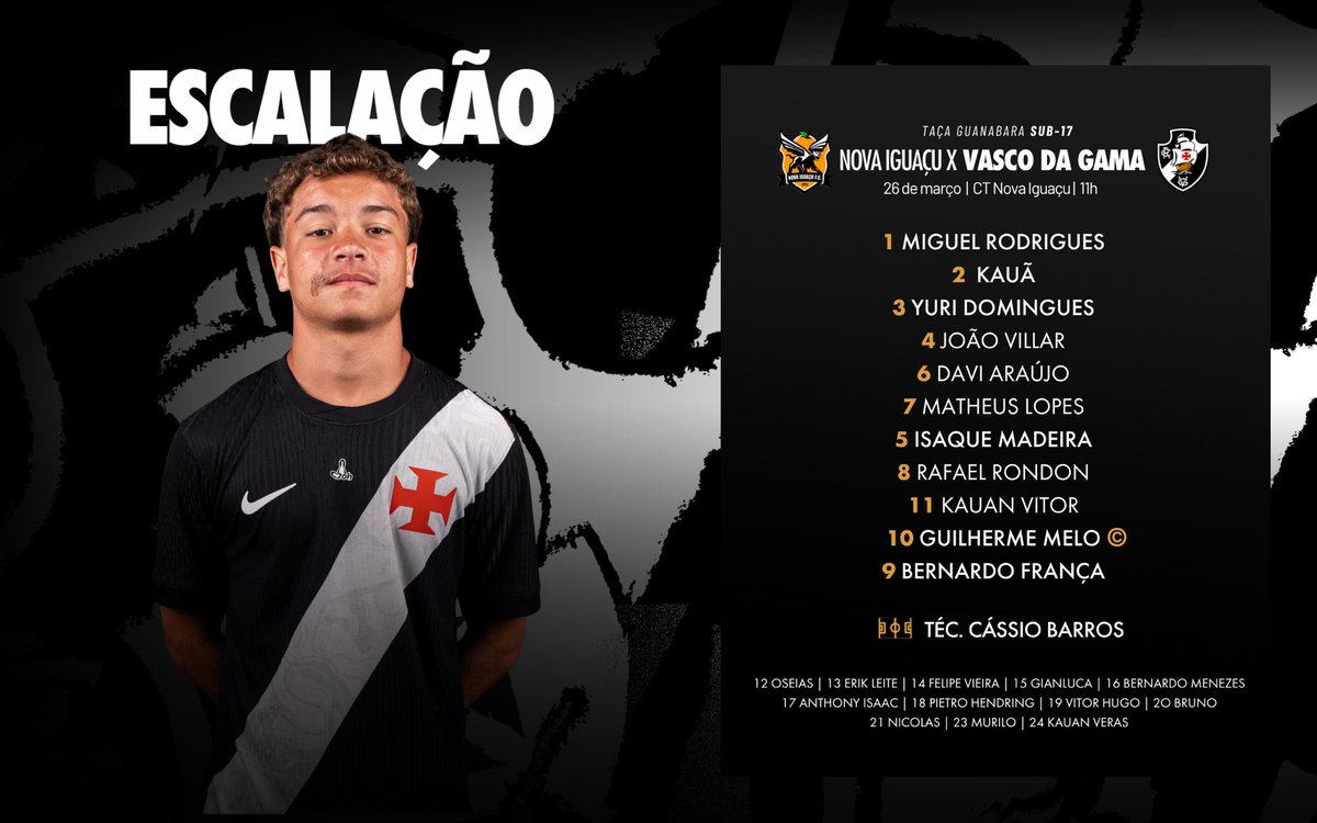 📋 Sub-17 escalado para o duelo com o Nova Iguaçu, pela 3ª rodada da Taça Guanabara!
