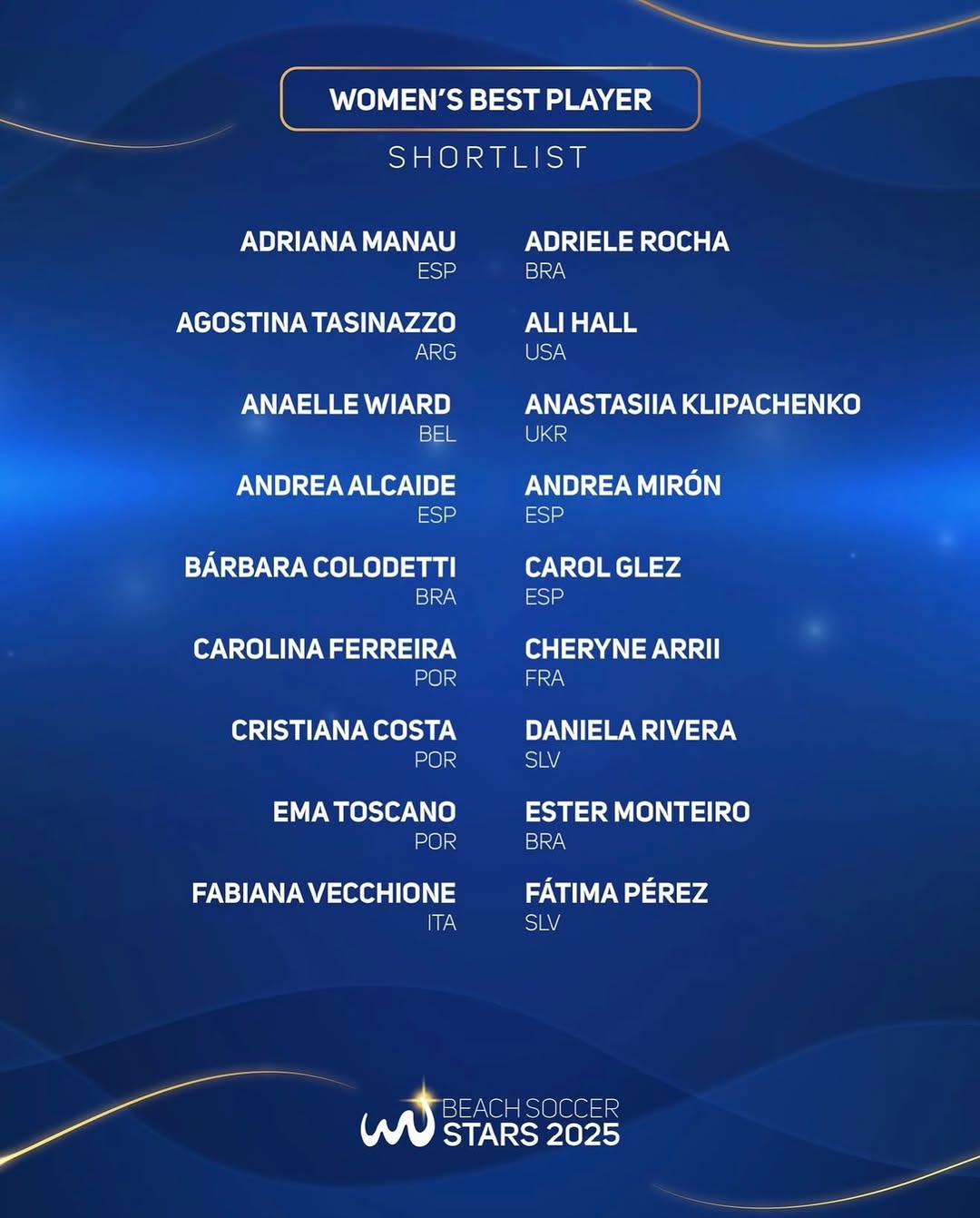 O Vasco Beach Soccer tem orgulho de anunciar que a nossa atleta @adrimanau foi selecionado para a lista das 62 melhores jogadoras do mundo em 2025, reconhecimento que reafirma sua excelência e o coloca mais uma vez entre os principais nomes da modalidade.
