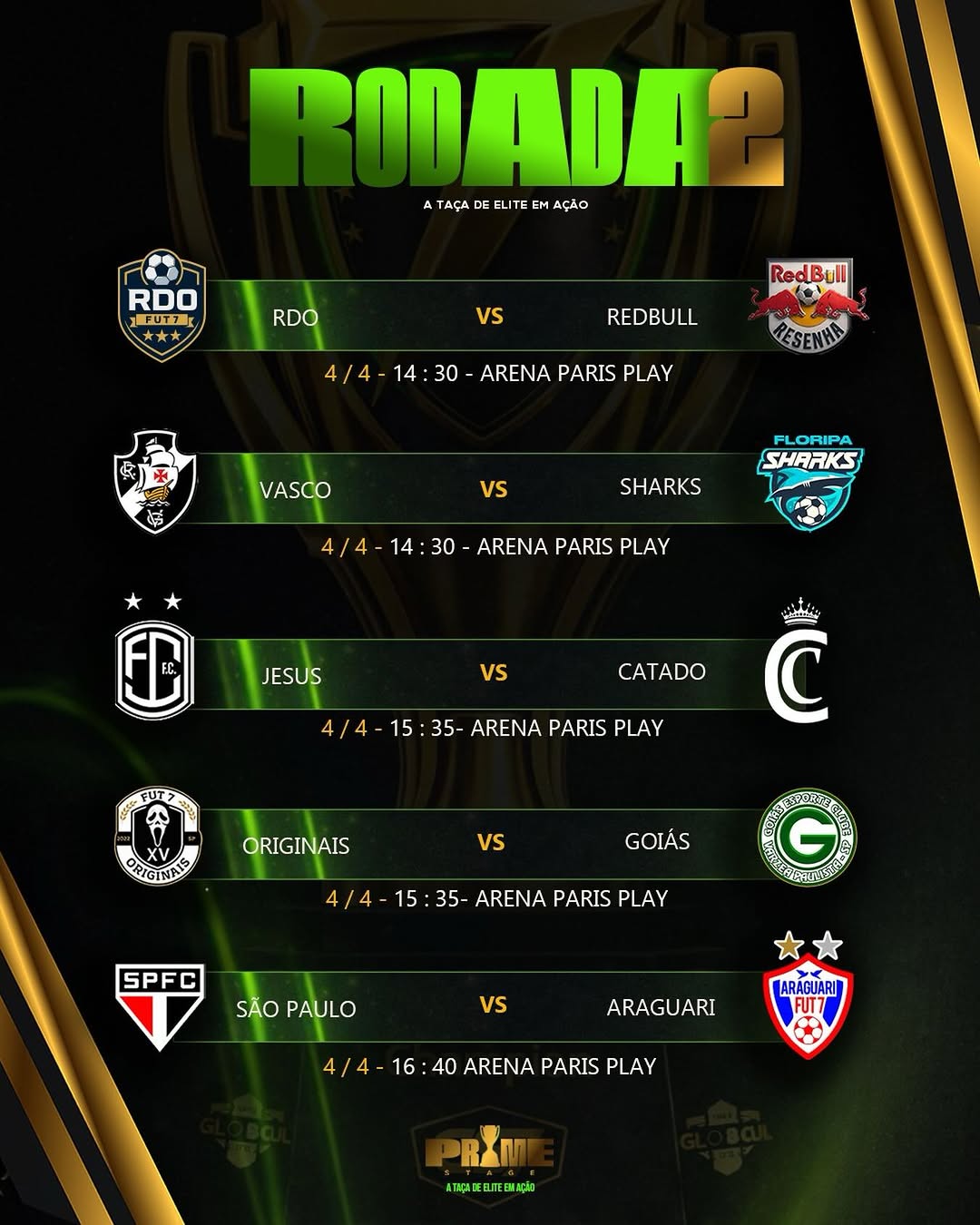 Confira os confrontos da segunda rodada da Prime Stage.