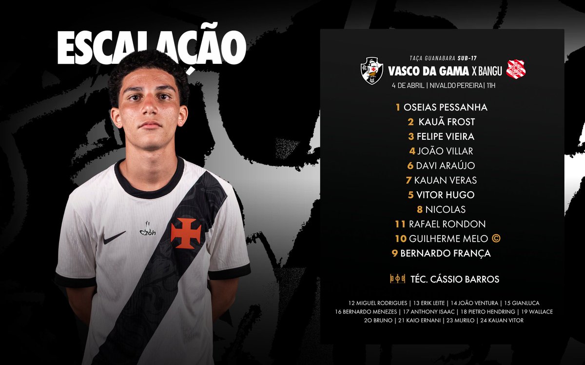 📋 Sub-17 escalado para o duelo com o Bangu, pela 4ª rodada da Taça Guanabara!