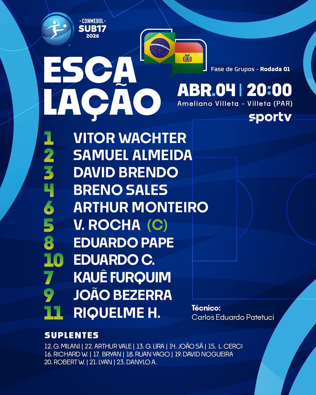 A Seleção Brasileira Sub-17 está escalada para a estreia no Sul-Americano, contra a Bolívia!