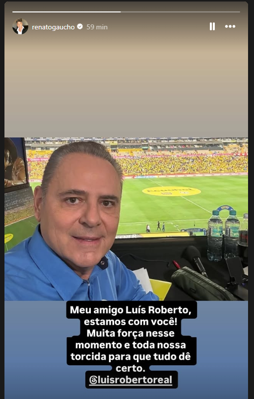 Renato Gaúcho deseja 'força' ao narrador Luís Roberto, que ficará fora das transmissões dos próximos meses para tratar da saúde