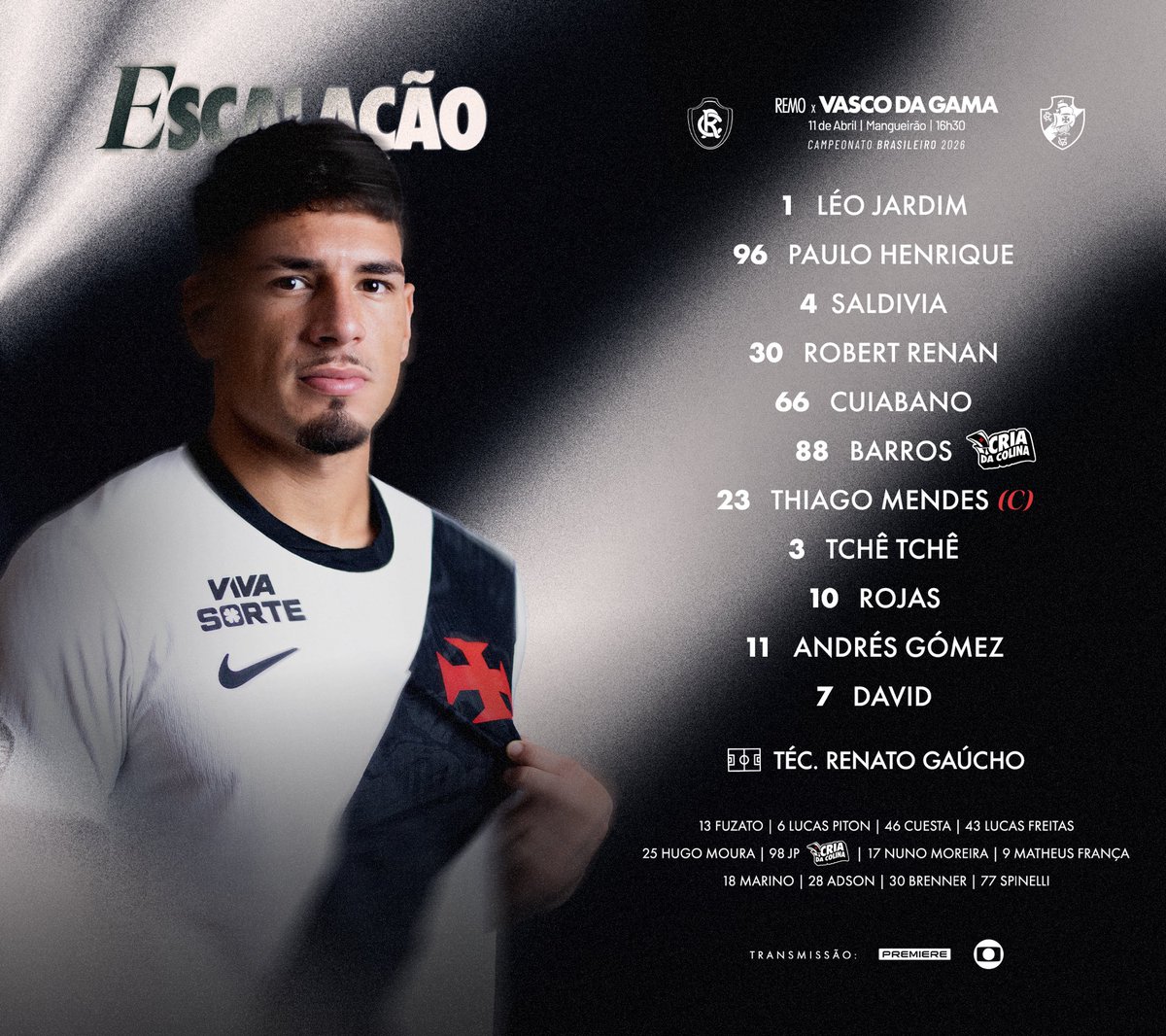 Confira a escalação do Vasco para o jogo contra o Remo; Paulo Henrique e Johan Rojas são as novidades