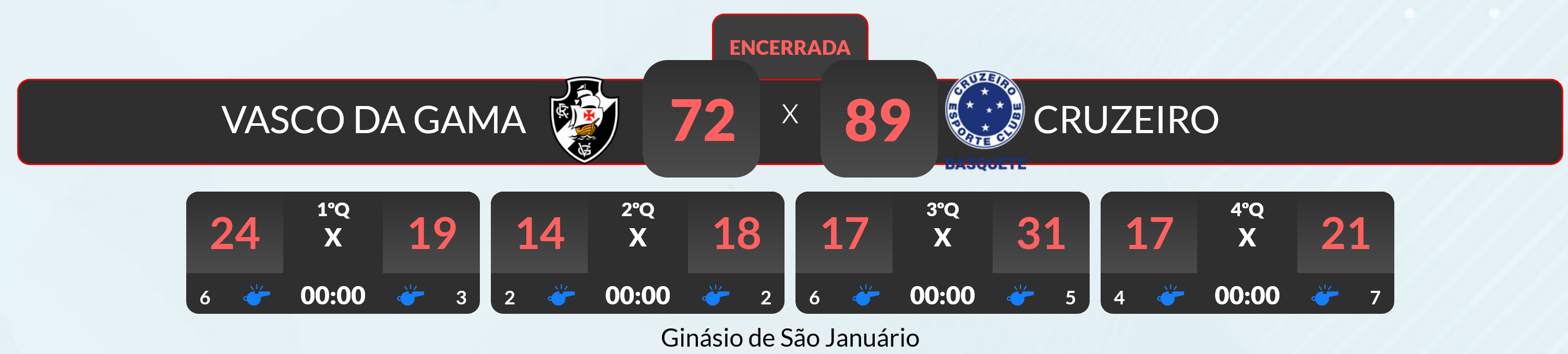 Vasco perde para o Cruzeiro e pode ser rebaixado no NBB ainda neste sábado
