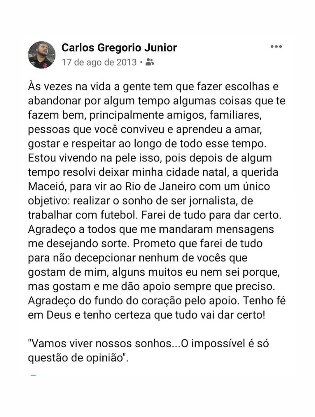 Não seria verdade se eu dissesse que, quando saí de Maceió há 13 anos, imaginava viver tudo o que já vivi na profissão, com o jornalismo e dentro do Vasco.