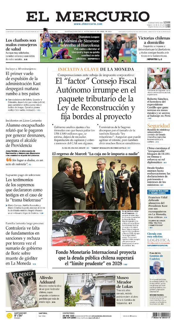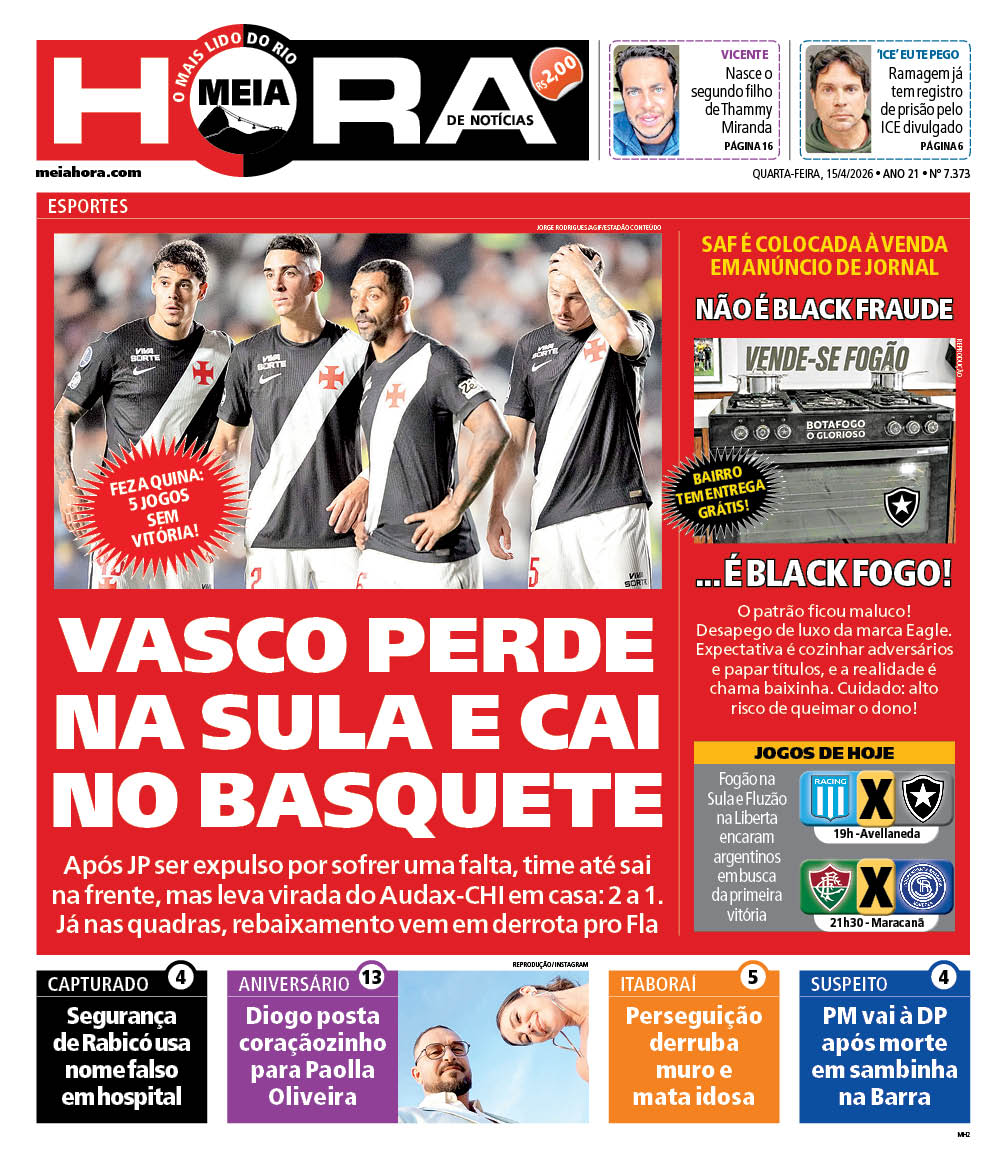 Pela Copa Sul-Americana, o Vasco, prejudicado pela arbitragem, foi derrotado pelo Audax Italiano por 2 a 1 de virada em São Januário. No basquete, o Vasco foi rebaixado no NBB. Veja as capas dos jornais.