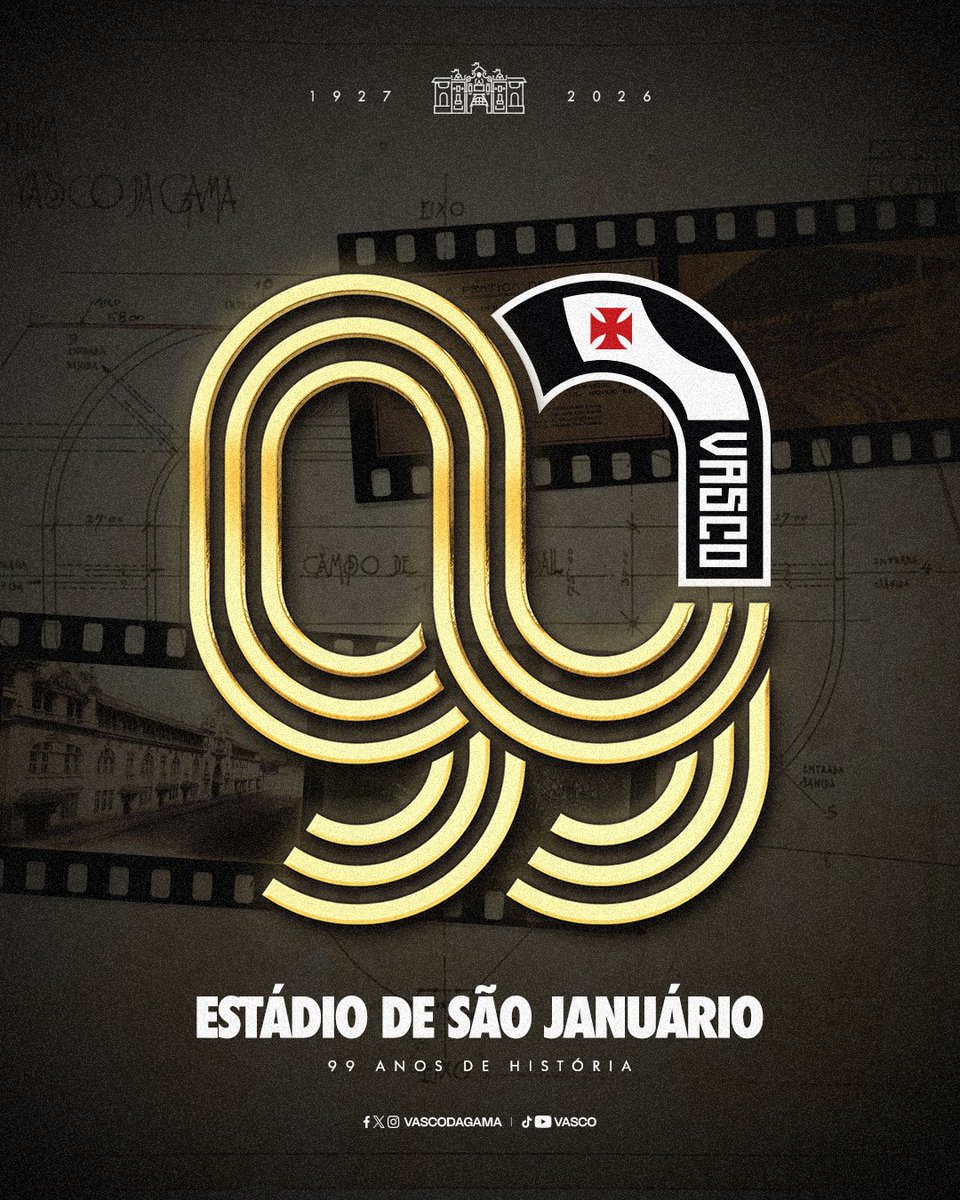 Vasco exalta os 99 anos de São Januário: 'O nosso Caldeirão'