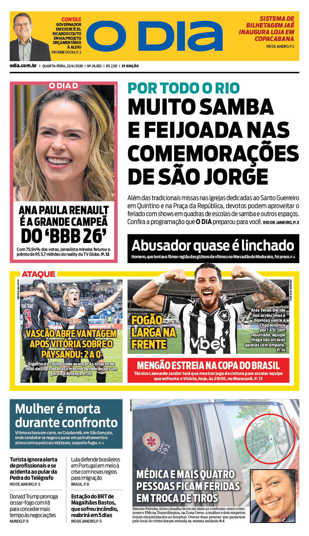 Em sua estreia na Copa do Brasil, já na 5ª fase da competição, o Vasco derrotou o Paysandu por 2 a 0 na noite desta terça-feira no Mangueirão, em Belém, com dois gols de Spinelli. Veja as capas dos jornais.