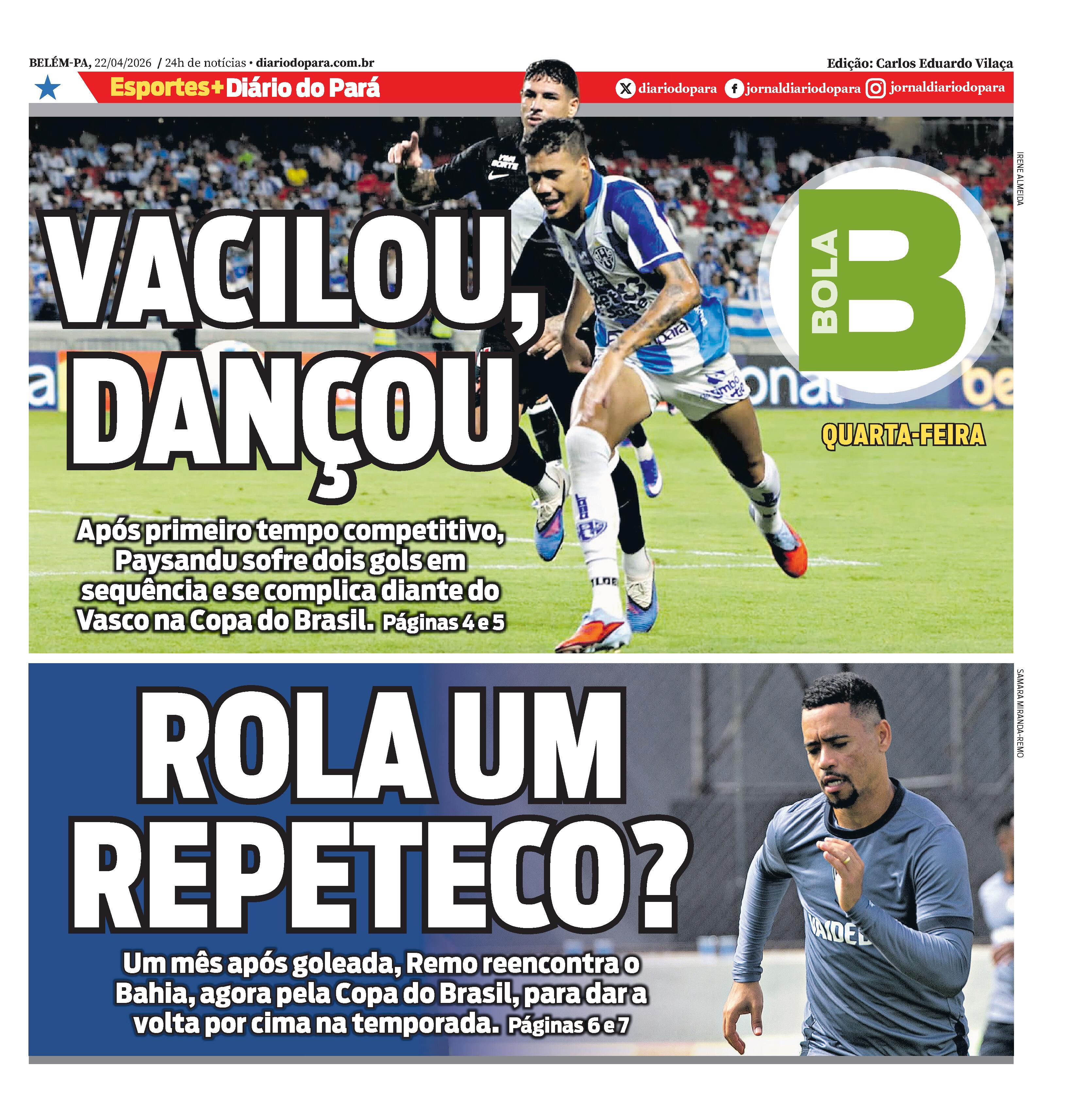 Veja as capas dos jornais após Paysandu 0 x 2 Vasco