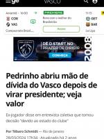 Pedrinho faz postagem sobre atos como presidente e carreira como jogador: 'Conhecimento se aprende, relacionamento se vive'